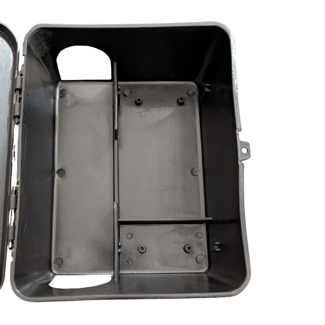 Este cebadero negro de plástico es una estación de cebado reutilizable diseñada para el control seguro de ratas y ratones. Su estructura cerrada permite colocar rodenticidas, trampas adhesivas o cebos sólidos de forma protegida, evitando el acceso directo de personas y mascotas.